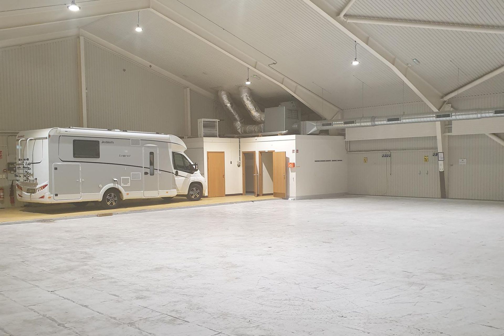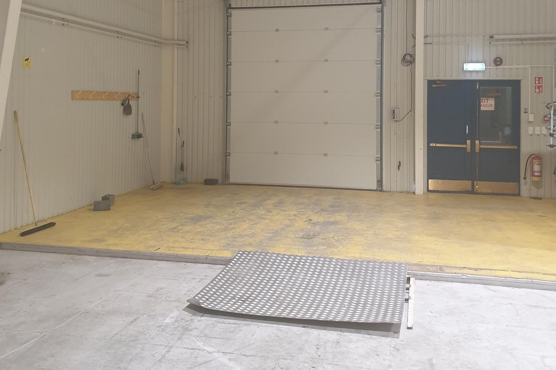 Um er að ræða atvinnuhúsnæði á einni hæð, sem samanstendur að mestu af stóru og opnu rými með mikilli lofthæð, sem býður upp á fjölbreytta nýtingarmöguleika. Í húsinu er eitt salerni ásamt tveimur litlum, lokuðum geymslum. Þá er stór innkeyrsluhurð (3 x 3,5 m) sem hentar vel fyrir aðkeyrslu og vörumóttöku.